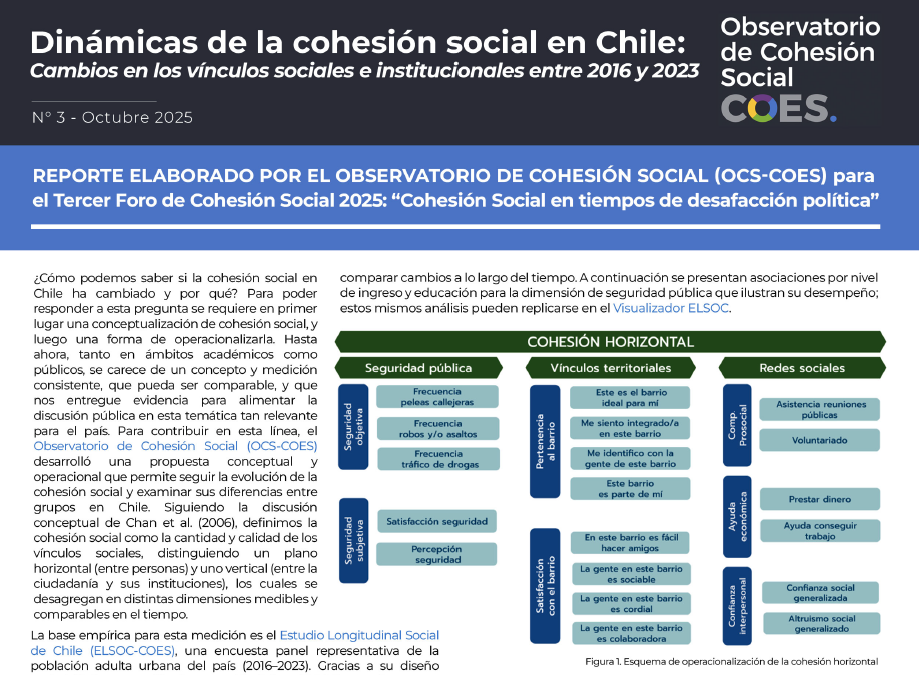 El Observatorio de Cohesión Social (OCS) es una plataforma dedicada a la difusión de conocimiento basado en evidencia empírica sobre las dinámicas de cohesión social.